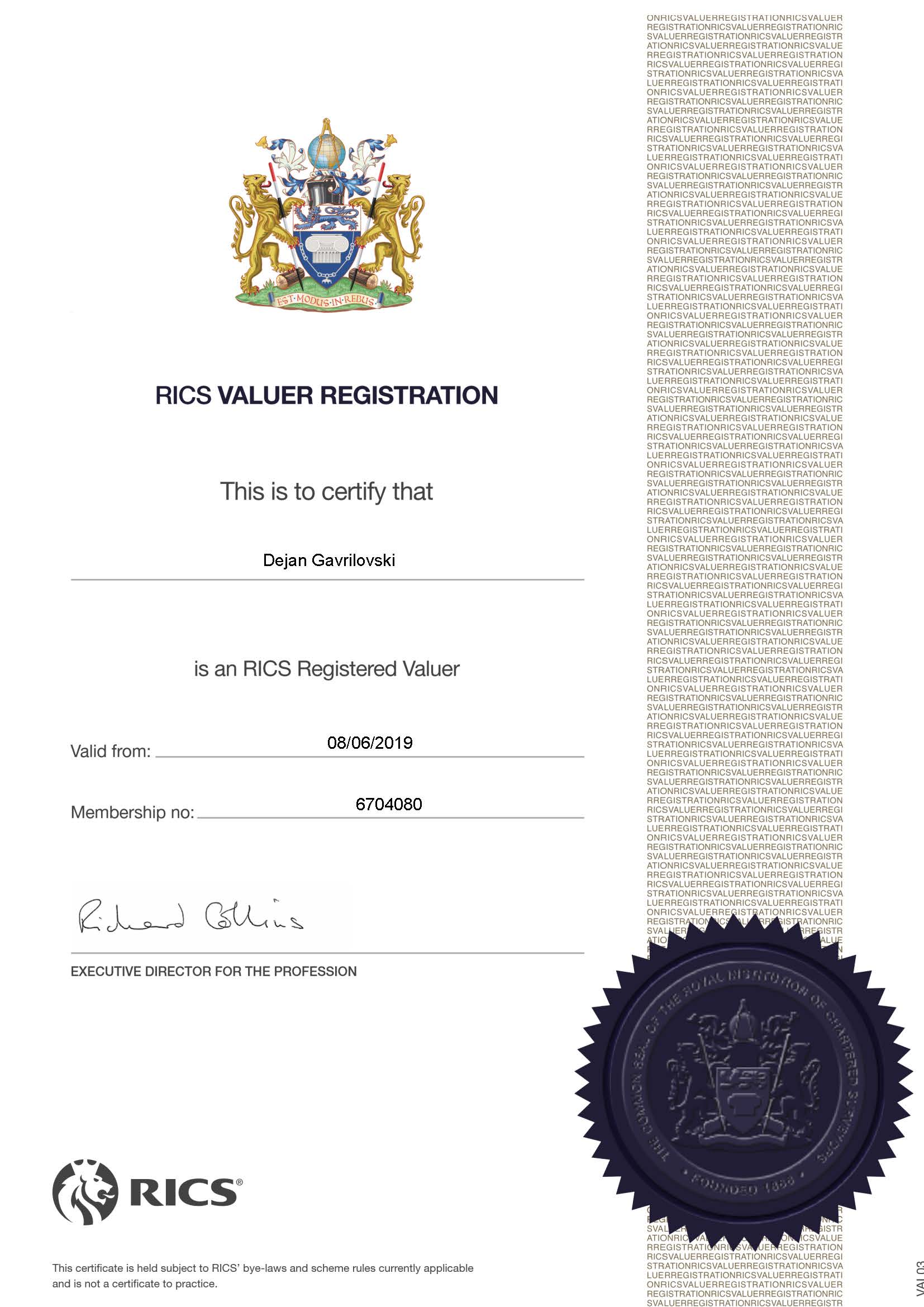 Своето работење го има регулирано согласно стандардите на работење кои прозлегуваат од Меѓународната Институција RICS.